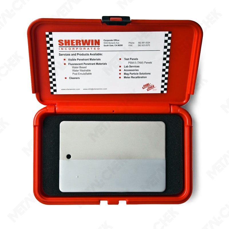 O Bloco Padrão PSM-5 (TAM) é utilizado para verificar a eficácia do sistema de inspeção por líquidos penetrantes (tipos I e II). Fabricado em latão recoberto com cromo, o bloco possui cinco descontinuidades padronizadas, com um dos lados podendo ser polido (P) ou jateado (G).
